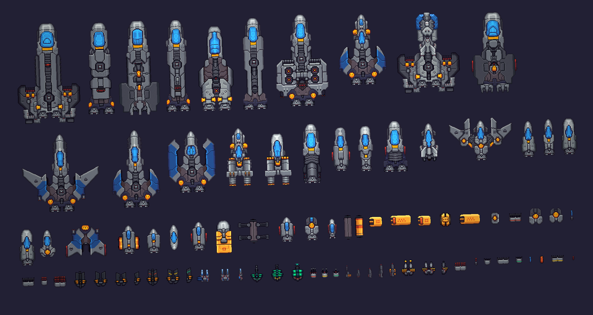 All sprites are in png format and a main aseprite source is included to export all starships again if you modify them.